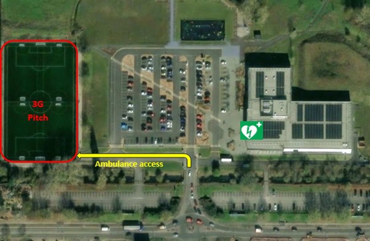 The Leisure Centre kindly request that we keep off the grass bank and access the pitch via the tarmac paths at either end of the car park